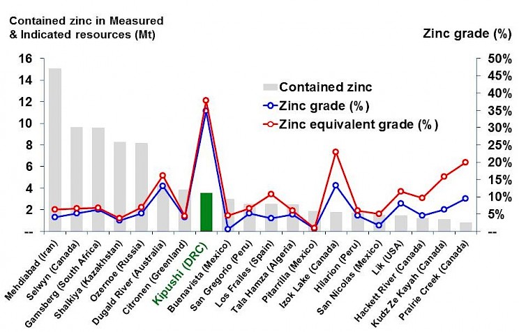 - Life-of-mine average cash cost of $0.54 per pound of zinc is expected to rank Kipushi, once in production, in the lower quartile of the cash-cost curve for zinc producers globally.