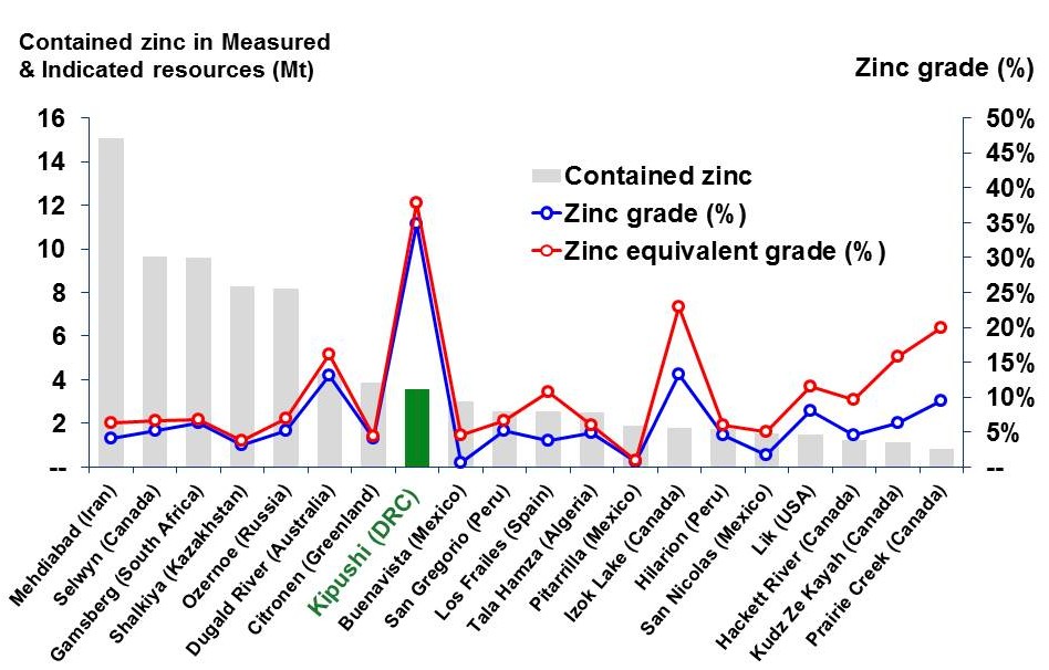 Figure 5. World’s top 20 zinc projects by contained zinc. |