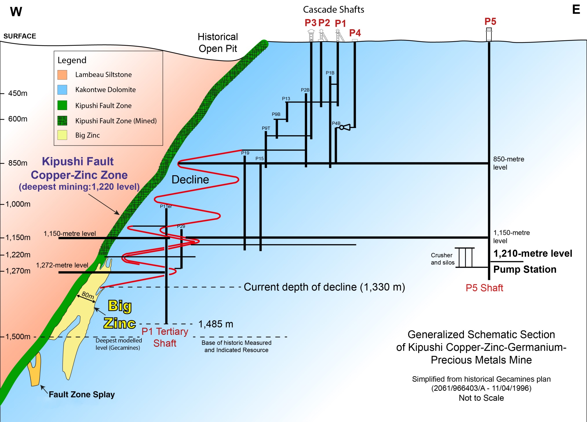 Now, the planned restoration of production at Kipushi is based on initial mining that will be focused on the Big Zinc Deposit.