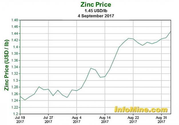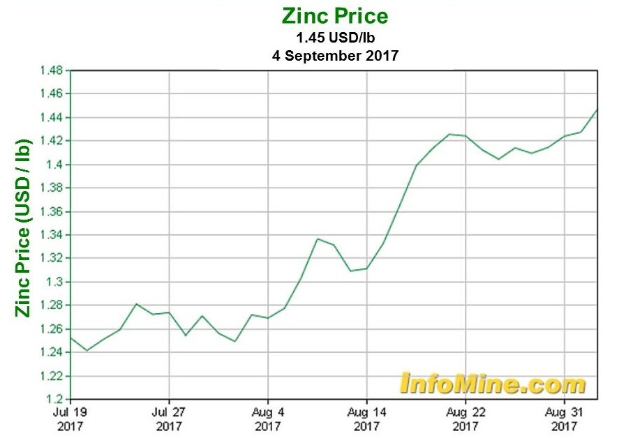 Zinc prices are trading above $1.40 a pound and are at 10-year highs. |