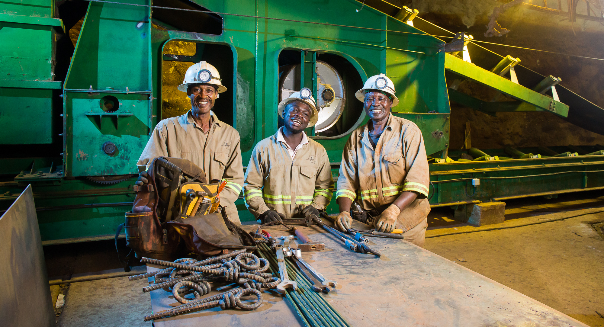 KICO team members at the new conveyor belt installed at Kipushi’s 1,150-metre level