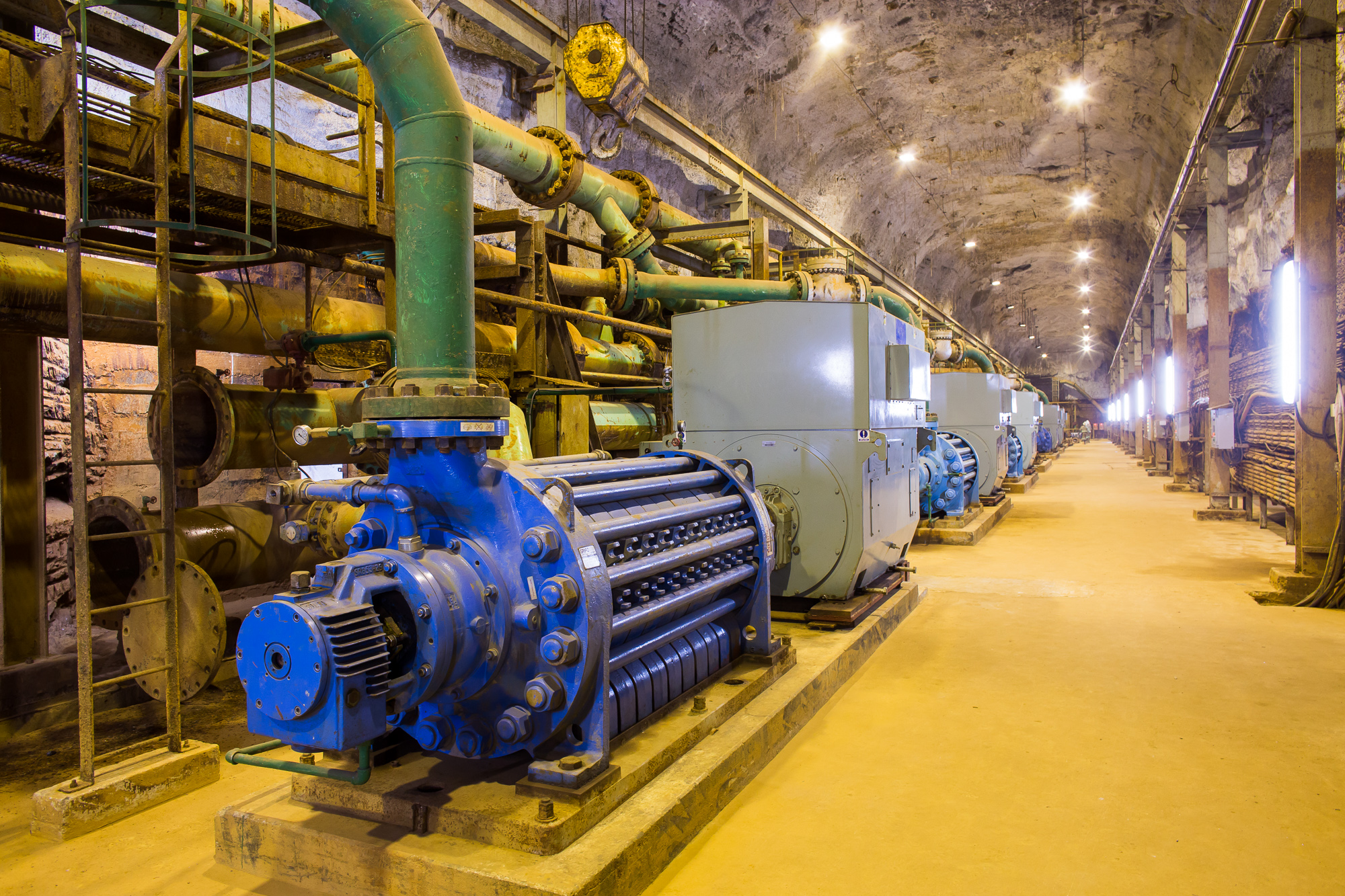 Kipushi’s upgraded water pumping station at the 1,210-metre level. |