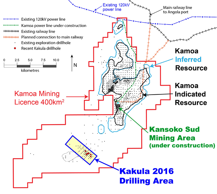 Figure 2. Kamoa Project map shows the planned initial mining area at Kansoko Sud and the adjacent Kakula exploration area.