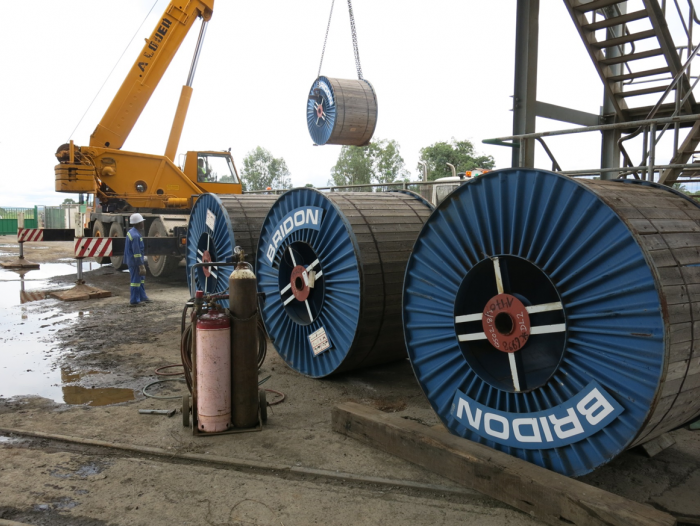 Figure 13: Off-loading new wire rope for the Shaft 5 hoist