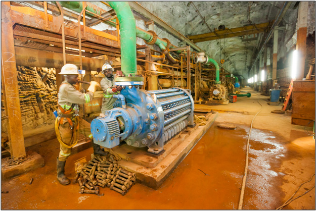 Figure 2. Main pump station in Shaft 5 at 1,200-metre-level with installation of Grifo