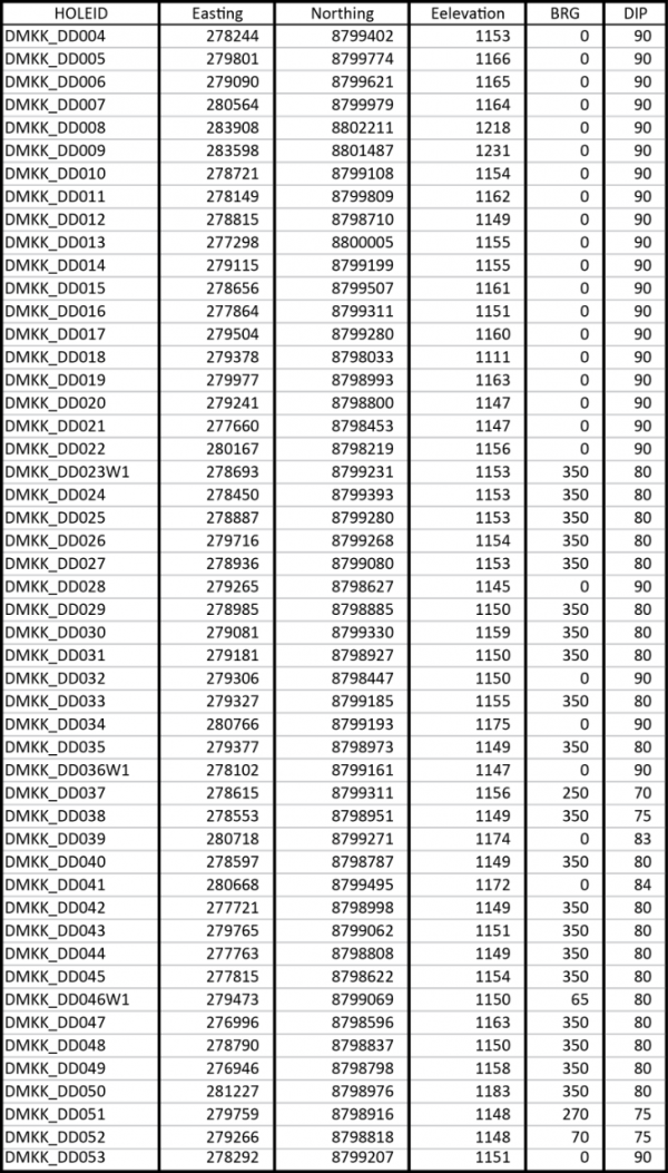Table 2: Collar location and elevation for Makoko drillholes.