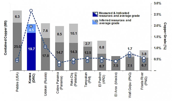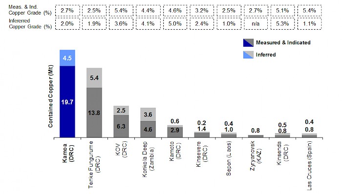 Figure 5: Contained copper in high-grade deposits (Measured & Indicated Mineral Resources, inclusive of Mineral Reserves, and Inferred Mineral Resources; with grades above 2.5% copper).
