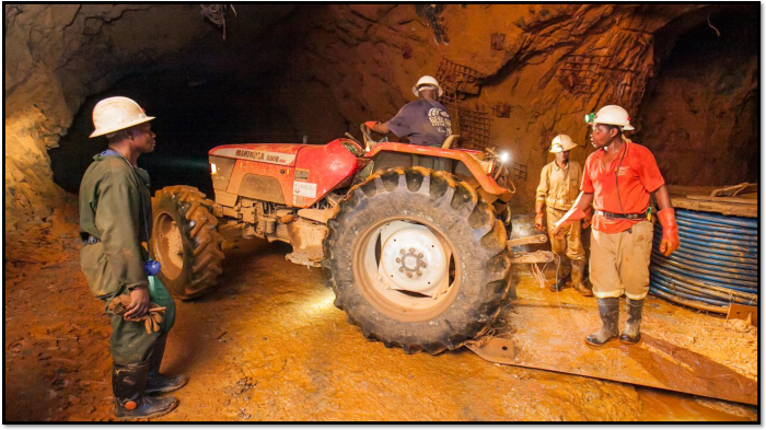 Figure 6: Moving heavy equipment at 1,150 metres below surface in preparation for underground drilling.