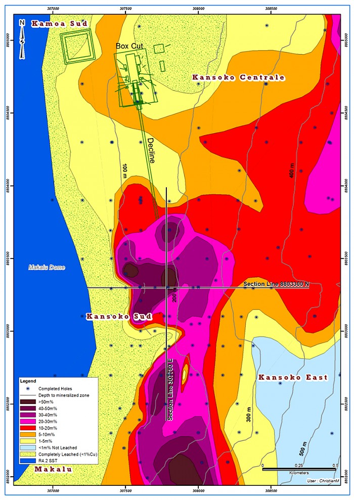 Reviews of the resource model, combined with results from recent infill drilling at Kansoko Sud, have confirmed grade continuity, which allows the resource model to be constrained at a higher cut-off grade. The focus in planning the early years of mine production continues to be on the near-surface and high-grade material from Kansoko Sud to maximize margins. The 3 Mtpa mine and concentrator can be split into modules to potentially better match the underground ramp-up and further reduce the pre-production development capital. This will be examined in more detail as part of the pre-feasibility study to provide flexibility to the development of the Kamoa Project.