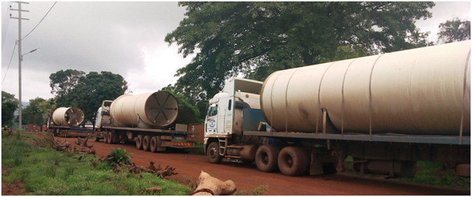 Delivering new penstocks that will deliver water from the dam to the new turbines at the Mwadingusha hydropower plant.