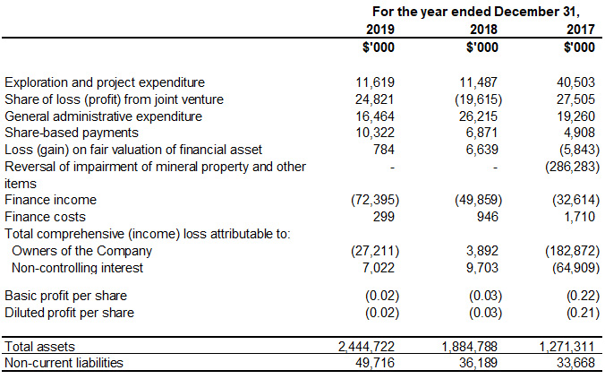 This selected financial information is in accordance with International Financial Reporting Standards (IFRS) as presented in the annual consolidated financial statements. Ivanhoe had no operating revenue in any financial reporting period and did not declare or pay any dividend or distribution in any financial reporting period.