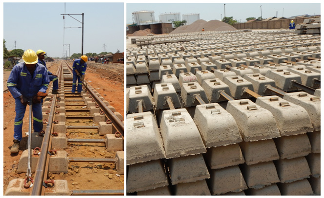 The World Bank is overseeing and financing the rehabilitation and upgrading of large sections of the main DRC national railway between Lubumbashi and the Zambia border crossing at Sakania. The work has focused on replacing the ballast beneath the tracks and installing new concrete sleepers (crossties) and heavier-gauge steel rails. New signalling and telecommunications equipment also has been installed along the line.