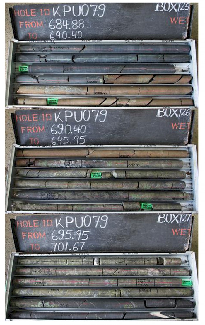 • KPU073: 7.9 metres true thickness grading 8.2% copper, 1.9 % zinc and 17.0 g/t silver and 0.26% cobalt.