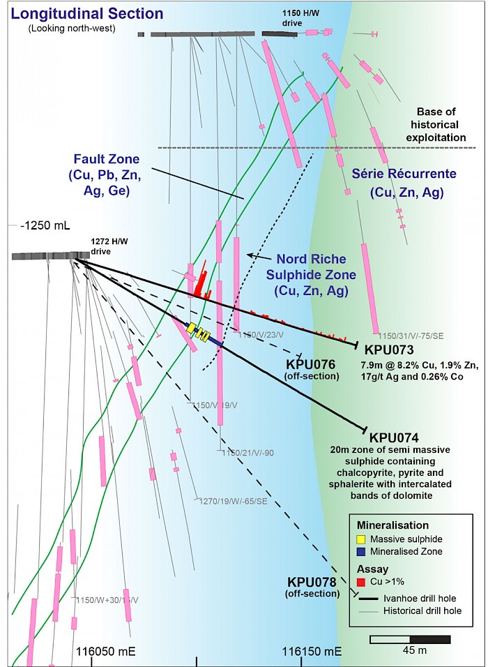 The new assay results were also returned for the Nord Riche area of the Kipushi fault zone,