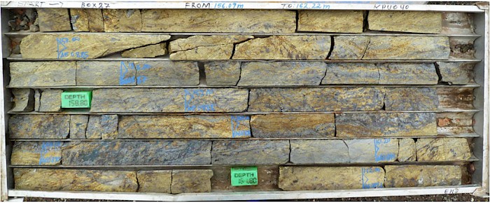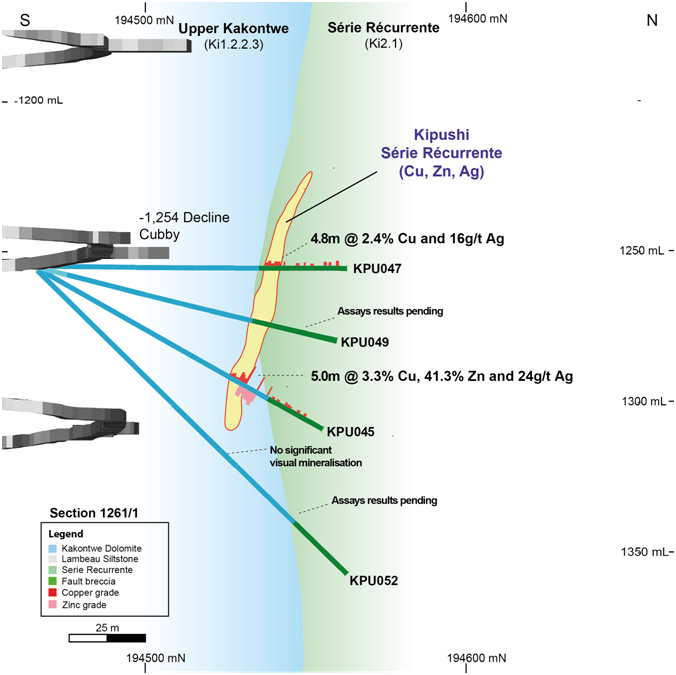 This intercept correlates with the previously reported high-grade copper-zinc intercept in nearby hole KPU003, which returned 31 metres grading 44.5% zinc, 6.1% copper, 144 g/t silver, 67 g/t germanium and 0.1 g/t gold.