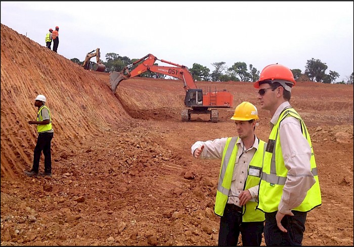 Figure 2: Ivanhoe’s geologists examine progress at the Kamoa box cut, September 15, 2014.