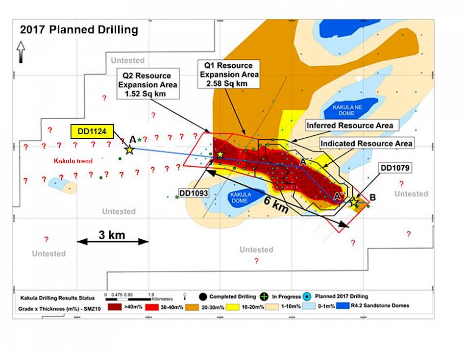 Figure 3. Planned drilling over the Kakula Exploration Area for Q1 2017