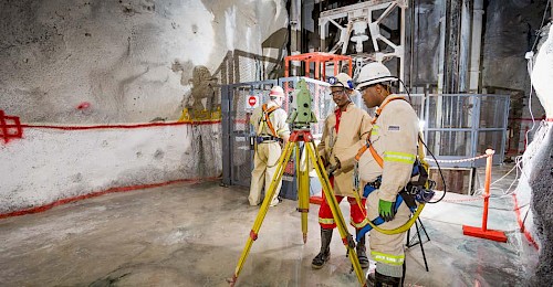 Platreef’s engineering team members surveying at the 450-metre-level station,